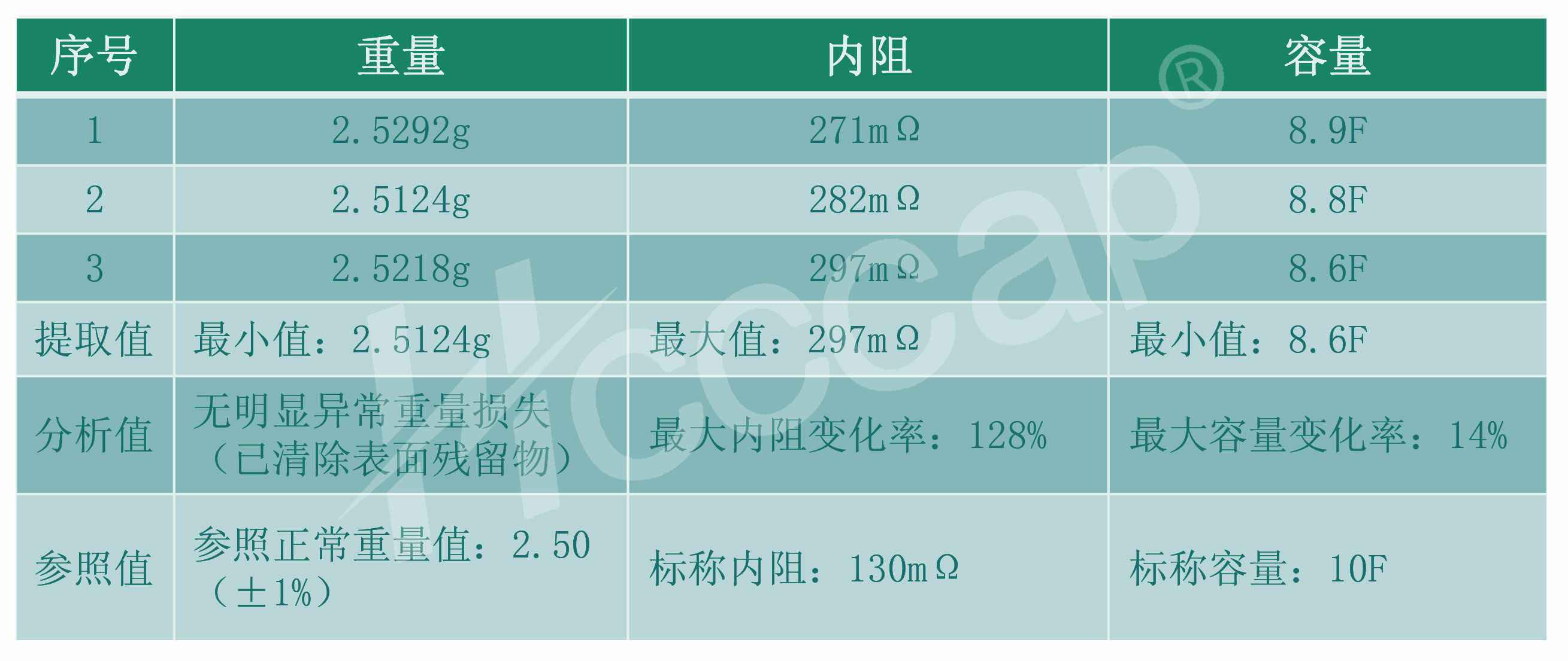 问题超级电容密封特性并未出现显性损伤,不会持续漏出大量电解液;
